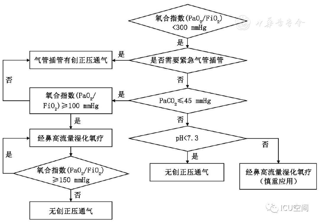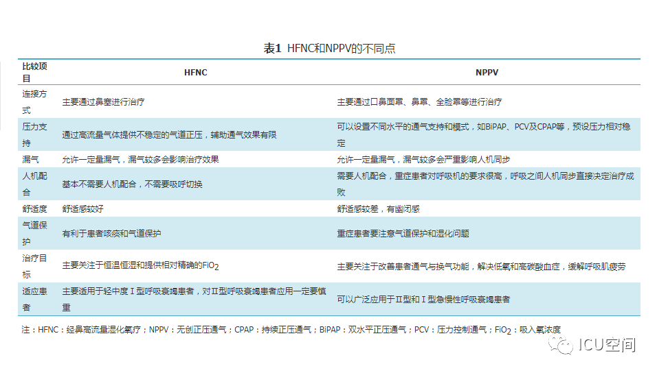 圖1 經(jīng)鼻高流量濕化氧療儀示意圖 人類開始氧氣治療的歷史可回溯到18世紀后葉,20世紀初即開始應用橡膠制作的鼻導管進行氧療[4]。1987年美國研發(fā)了最高流量可達20 L/min的氧療加溫濕化裝置MT-1000,應用于囊性肺纖維化等患者氧療促進下呼吸道分泌物排出。近10年來,HFNC進入快速發(fā)展和臨床廣泛應用階段,國際主流HFNC裝置都是采用無創(chuàng)呼吸機的工作原理:用空氧混合器進行空氧混合,吸入氧濃度(FiO2)為21%~100%,應用渦輪提供高流量的氣體,采用呼吸機應用的加溫加濕器和管路加熱導絲對吸入氣體進行全程加溫加濕,并通過近患者端實時監(jiān)測溫度和氧濃度進行動態(tài)調(diào)控。另外,部分呼吸機廠家在有創(chuàng)和無創(chuàng)呼吸機上設置了HFNC功能,進一步拓展了呼吸機的臨床適用范圍,這也是未來的發(fā)展方向[5]。國內(nèi)HFNC的歷史僅有5年左右,在前期仿制國外HFNC的基礎上進行創(chuàng)新,在很短的時間內(nèi)形成自己的特色,如可自動調(diào)節(jié)和精確調(diào)控FiO2(21%~100%)、溫度控制精度可達到±1 ℃、呼吸管路采用免消毒氣路技術等。 二、HFNC設備的結構特點及其工作原理 (一)HFNC的結構特點 HFNC按其結構特點可分為3大組成部分。 (1)氣體的空氧混合部分:其作用是將空氣和氧氣按預設氧濃度在渦輪前進行混合。氧濃度調(diào)控有2種方法,一種是通過浮標式氧氣流量計調(diào)節(jié)氧氣流量實現(xiàn)對氧濃度的控制,該方法無法預設氧濃度,只能通過調(diào)節(jié)氧氣流量產(chǎn)生實際的FiO2;一種是微型比例閥和超聲氧濃度傳感器實現(xiàn)對氧濃度的控制,可以預設FiO2。 (2)氣體的加溫濕化部分:其作用是將空氧混合后的氣體進行加溫濕化。 (3)氣體的輸送部分:其作用是保證已完成加溫濕化的空氧混合氣體以恒溫恒濕恒流速的方式輸送至患者端。高流量濕化氧療儀與患者連接部分為高流量鼻塞,高流量鼻塞的尖端呈斜面型的出口,質地柔軟,用一個具有彈性可調(diào)節(jié)的過耳頭帶固定于患者面部。 (二)HFNC的生理學機制 HFNC通過輸送高流速氣體的方式,可以維持一定水平的PEEP,維持肺泡開放,有利于呼氣末肺泡復張和氣血交換。Corley等[6]通過使用電阻抗斷層掃描(EIT)測量心臟手術后肺容積的生理學研究證明了HFNC可促進呼氣末肺容積增加,表明HFNC通過高流量產(chǎn)生的PEEP作用促進肺復張。有研究結果顯示,HFNC流量每增加10 L/min,患者咽腔PEEP就增加0.5~1 cmH2O(1 cmH2O=0.098 kPa)[7]。流量增加到60 L/min時,閉口的女性受試者咽腔PEEP可達到8.7 cmH2O左右,男性為5.4 cmH2O;張口呼吸情況下女性為3.1 cmH2O,男性為2.6 cmH2O左右。但值得注意的是,由于HFNC允許大量漏氣,患者若張口呼吸必然導致PEEP水平不穩(wěn)定[6]。 HFNC通過為患者提供恒定的、可調(diào)節(jié)的高流速空氧混合氣體,沖刷患者呼氣末殘留在鼻腔、口腔及咽部的解剖無效腔的氣體,可明顯減少患者下一次吸氣時吸入的CO2的含量[8]。M?ller等[9]通過81 mKr氣體測定HFNC對10名健康人鼻咽部和3例氣管切開患者CO2的清除率,發(fā)現(xiàn)CO2清除率和HFNC的氣體流速和佩戴時間直接相關。 HFNC主要關注于提供相對精確的恒溫和恒濕的高流量氧療,因而能夠更符合人體生理情況下呼吸道的氣體溫度及濕度,降低醫(yī)用干冷氣體對上下呼吸道黏液纖毛系統(tǒng)功能和黏膜的影響[10]。與普通氧療相比,使用HFNC可以明顯降低患者鼻、口、咽喉的干燥評分,有助于稀釋痰液和排痰,修復和維持人呼吸道上皮細胞和纖毛的結構和功能,提高患者的舒適度,降低下呼吸道感染的發(fā)生幾率[6,11] 鼻咽腔通過提供較大的表面積對吸入氣體進行濕化和溫化,但同時吸入氣體之間的摩擦會對氣流產(chǎn)生明顯的阻力[12]。HFNC可以提供滿足患者吸氣流速需求、恒溫恒濕的高流量氣體,患者在吸氣時不需要用力吸氣也不需要對吸入氣體進行加溫加濕,這樣不僅降低吸氣阻力,同時避免患者對吸入氣體進行溫化濕化所需的代謝消耗,減少患者的呼吸做功[13,14]。而且與常規(guī)氧療輸出的低流量氧氣方式相比,HFNC能提供符合或超過患者所需的吸氣峰流速,減少了吸氣時空氣的稀釋作用,使得吸入氧氣的濃度不會受到患者的呼吸頻率、吸氣流速、呼吸形態(tài)等因素的影響,為患者提供精確穩(wěn)定的吸氧濃度,有利于改善患者氧合[6]?;颊叩脱鯛顟B(tài)得到改善,呼吸更舒適,自主用力呼吸減弱,加之PEEP作用,呼吸功會隨之降低[15]。 三、HFNC與NPPV的異同點 HFNC和NPPV在治療原理上存在許多相似之處。從工作原理上看,都是電動渦輪機驅動形成高速氣流,通過電磁閥實現(xiàn)流量可控,氣流均可加溫加濕,都是傳統(tǒng)意義上的正壓通氣,能夠維持一定水平的PEEP,實現(xiàn)氣道開放,減少死腔,改善通氣,且允許開放氣道發(fā)生漏氣。HFNC和NPPV的不同點見表1[16,17]。 表1 HFNC和NPPV的不同點 四、HFNC臨床適應癥及禁忌癥 由于各研究結果間的差異[18,19,20],目前HFNC臨床應用的適應證和禁忌證尚無統(tǒng)一的標準。根據(jù)已發(fā)表的HFNC臨床應用研究證據(jù),目前認為HFNC主要應用于治療輕~中度Ⅰ型呼吸衰竭患者[21,22,23]。對于伴有嚴重通氣功能障礙的Ⅱ型呼吸衰竭患者,由于HFNC無明顯的通氣輔助功能,且臨床療效仍不明確,此時應慎重選擇HFNC。HFNC的應用時機、適應證和禁忌證見表2。 表2 HFNC臨床應用適應證及禁忌證 推薦建