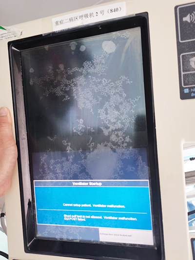 ② 如果呼吸機(jī)顯示Screen blocked,,就提示呼吸機(jī)觸摸屏感應(yīng)出現(xiàn)了故障。