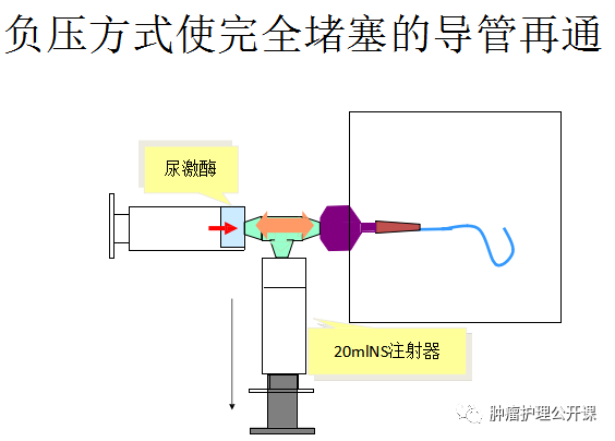 2、根據(jù)堵管液體的性質(zhì)(的 沉積、脂肪乳劑、酸性、堿性等)選擇尿激酶、乙醇、 碳酸氫鉀、弱鹽酸等通管,不可強(qiáng)行沖管